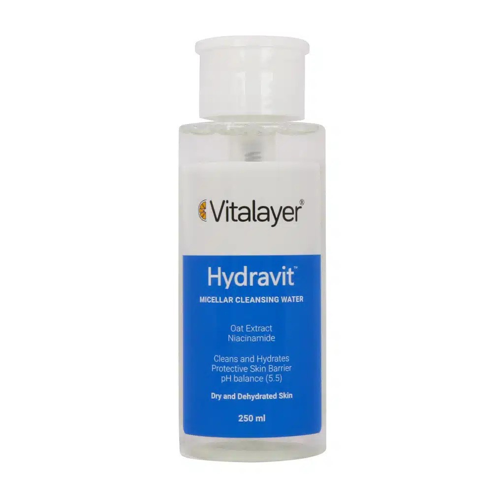 میسلار واتر Hydravit، یک پاککننده ملایم با قدرت جذب آلودگی، ذرات ریز و مواد آرایشی است که بدون نیاز به شستشو، پوست را کاملاً تمیز کرده و در عین حال به آن رطوبت میرساند. وجود هیالورونیک اسید و آلوئهورا در این محصول، آن را به یک پاککننده دوکاره (cleansing + hydrating) تبدیل کرده است.